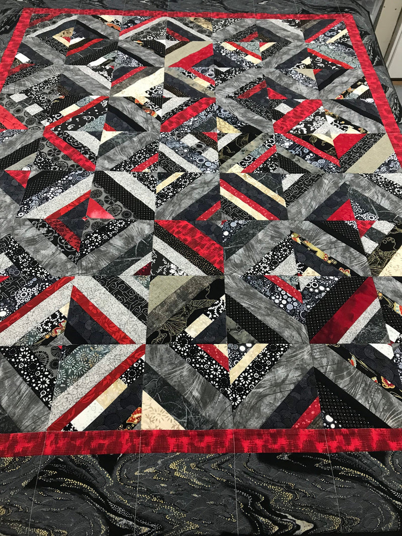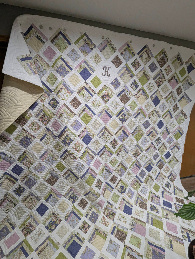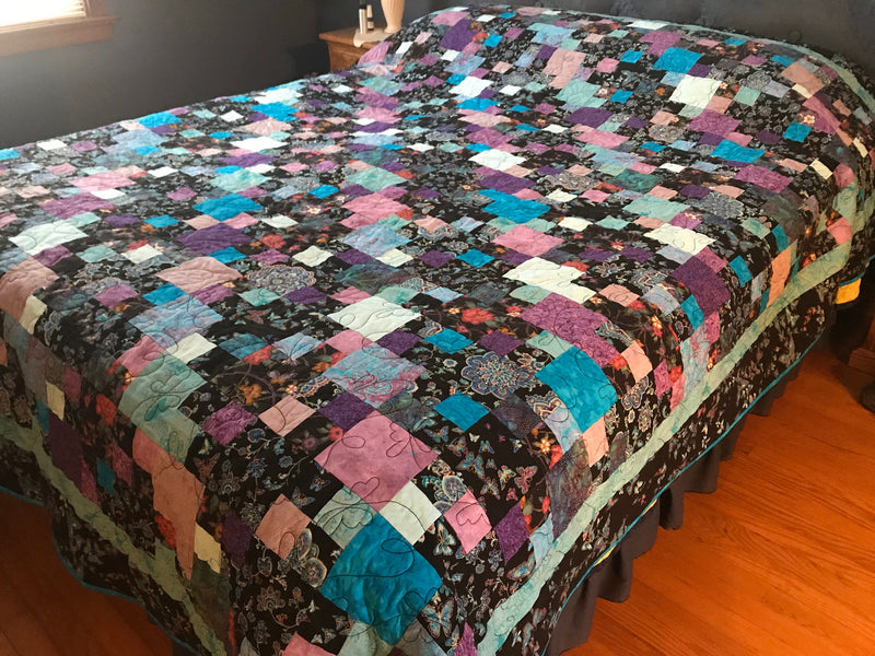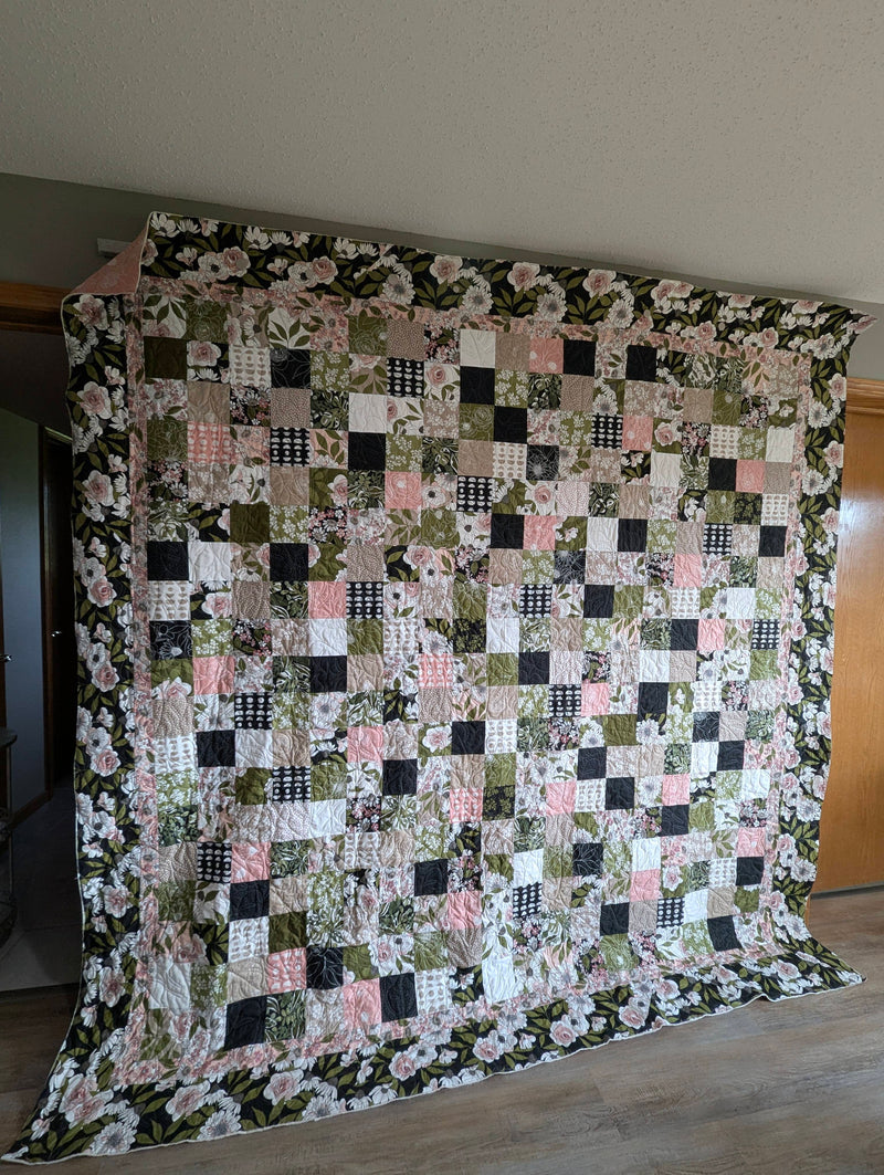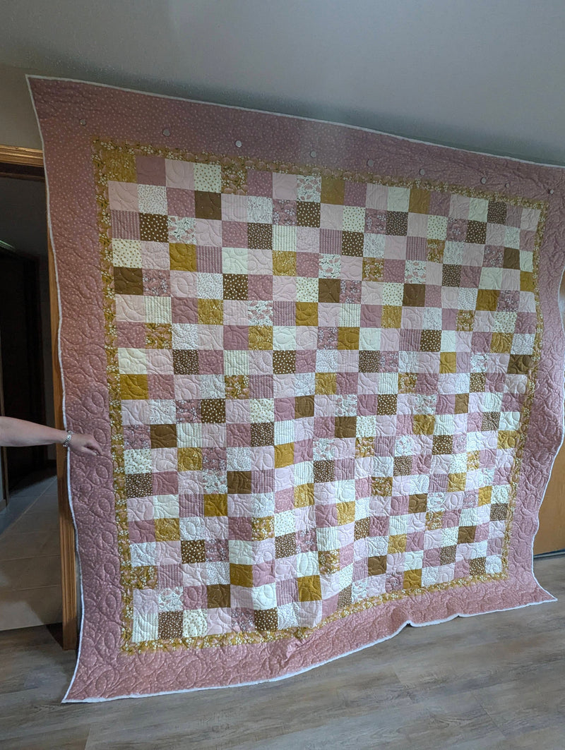 A king size quilt withfabrics from"Blush and Butterscotch" collection.