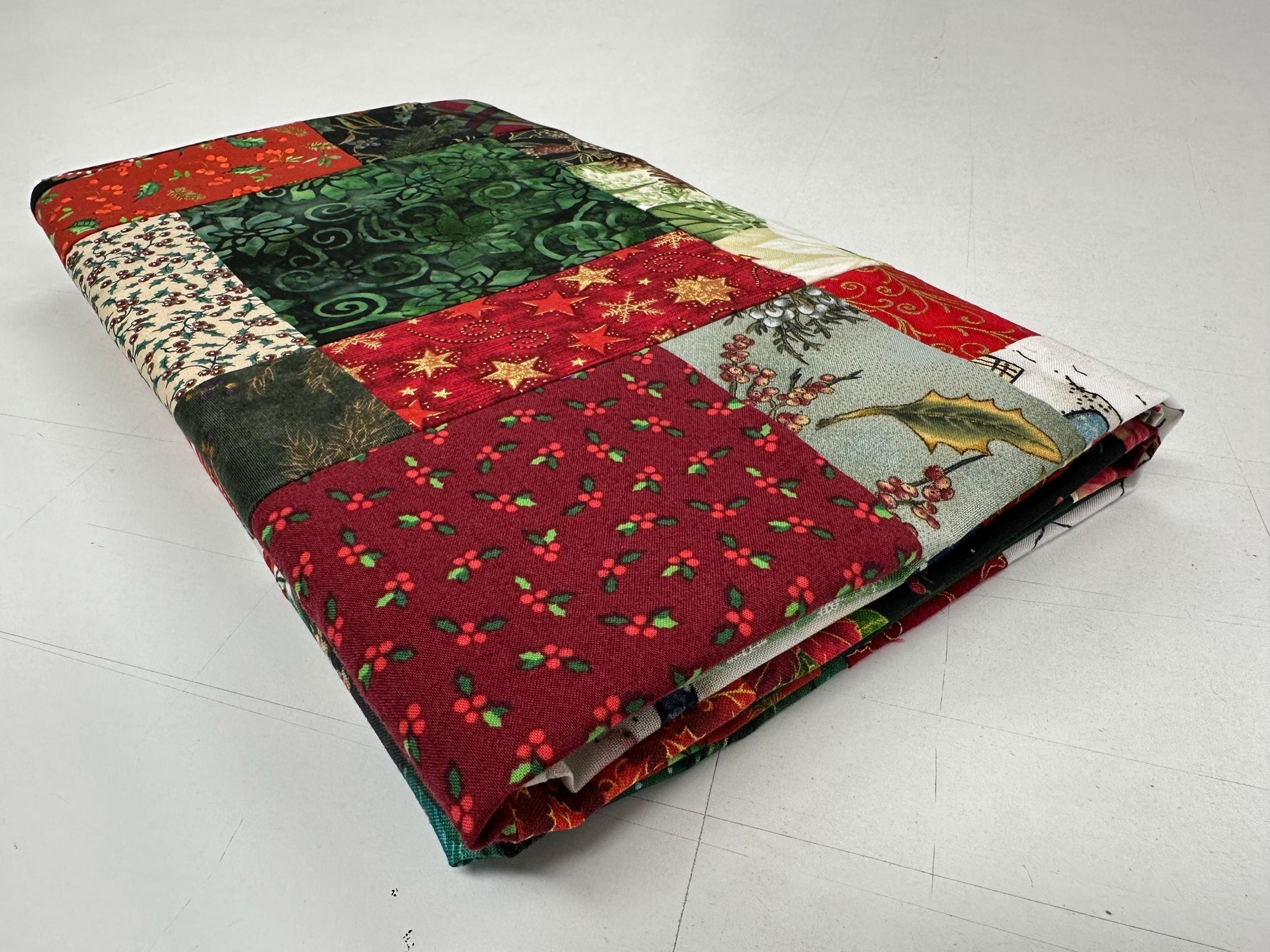 Festive Patchwork Christmas Quilt Top: Unfinished Handmade Lap Throw in Red & Green, 45x58 inches