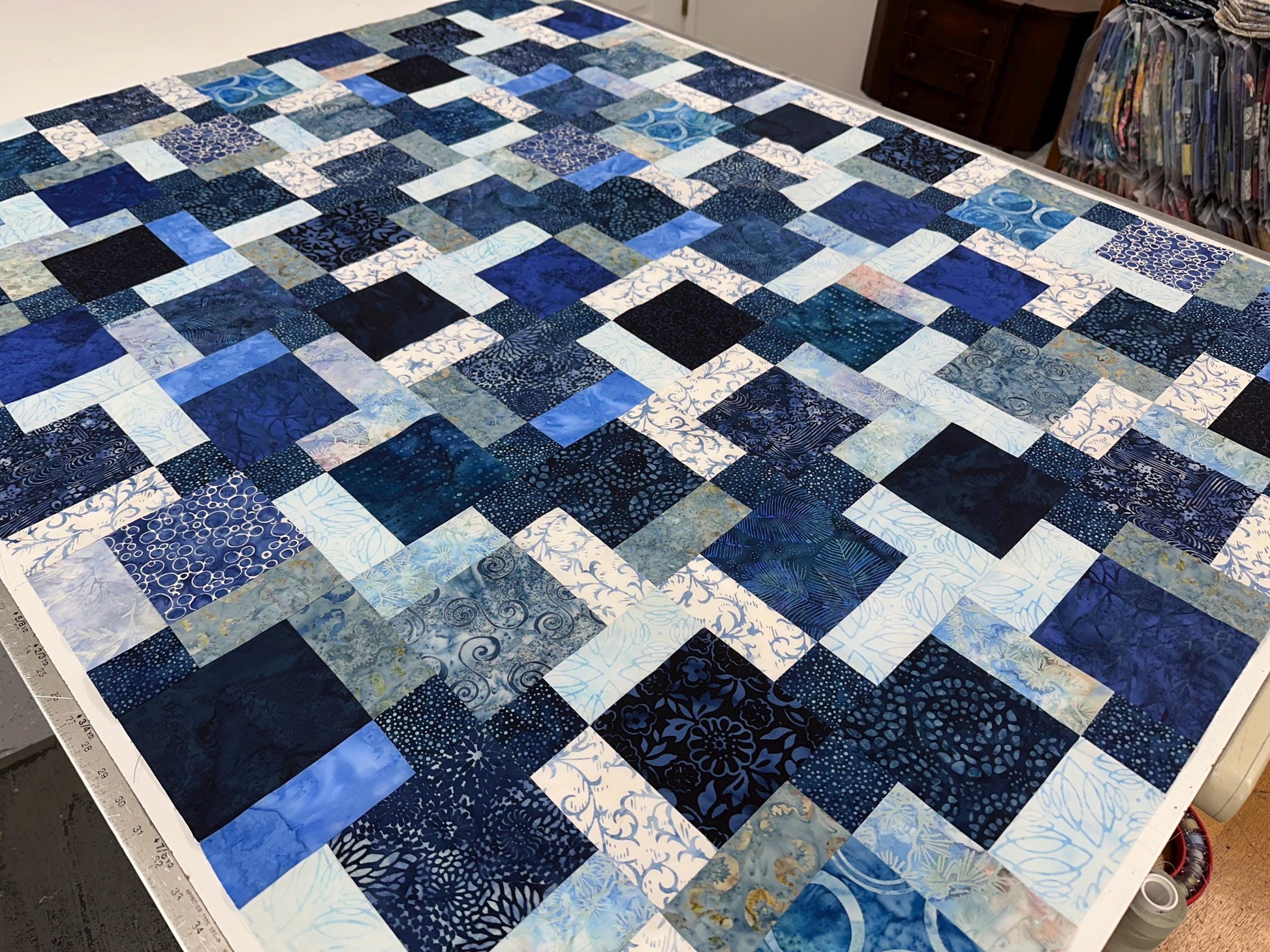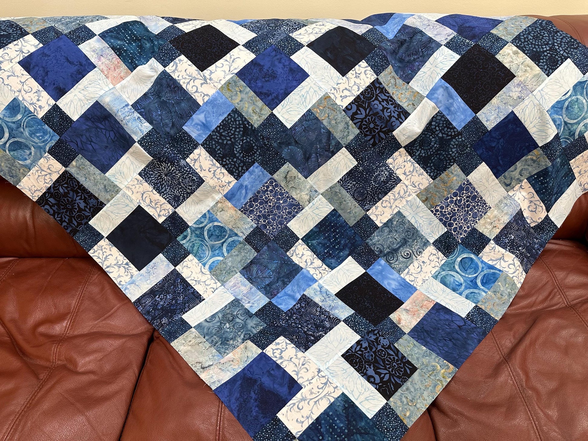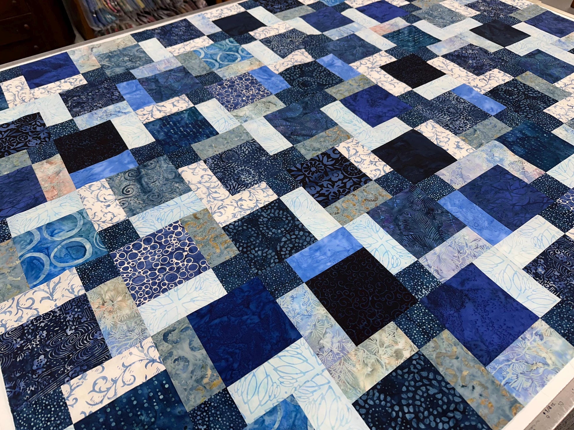 You receive the batik quilt top as shown, already pieced together without borders. You will need to provide your own backing, batting, quilting, and binding. You could also add borders to make this quilt larger.