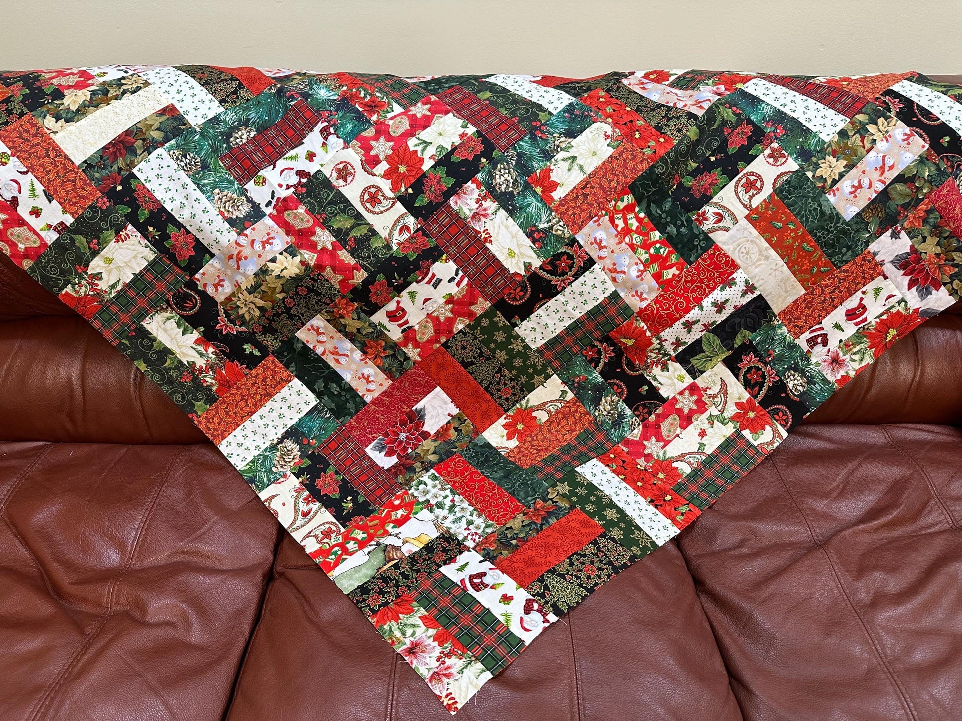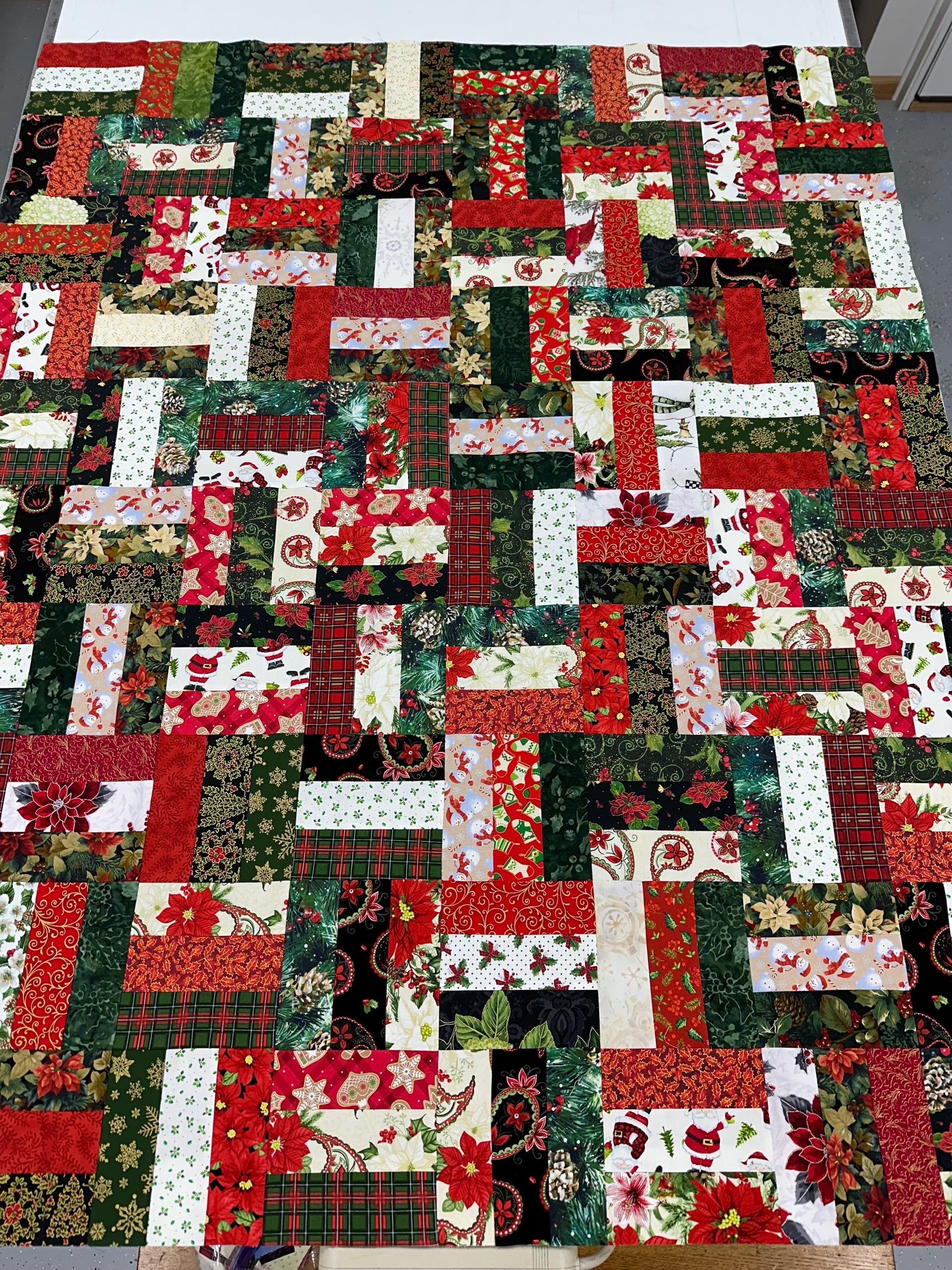 Handmade Christmas Quilt Top: Red & Green Patchwork (48 x 60 inches)