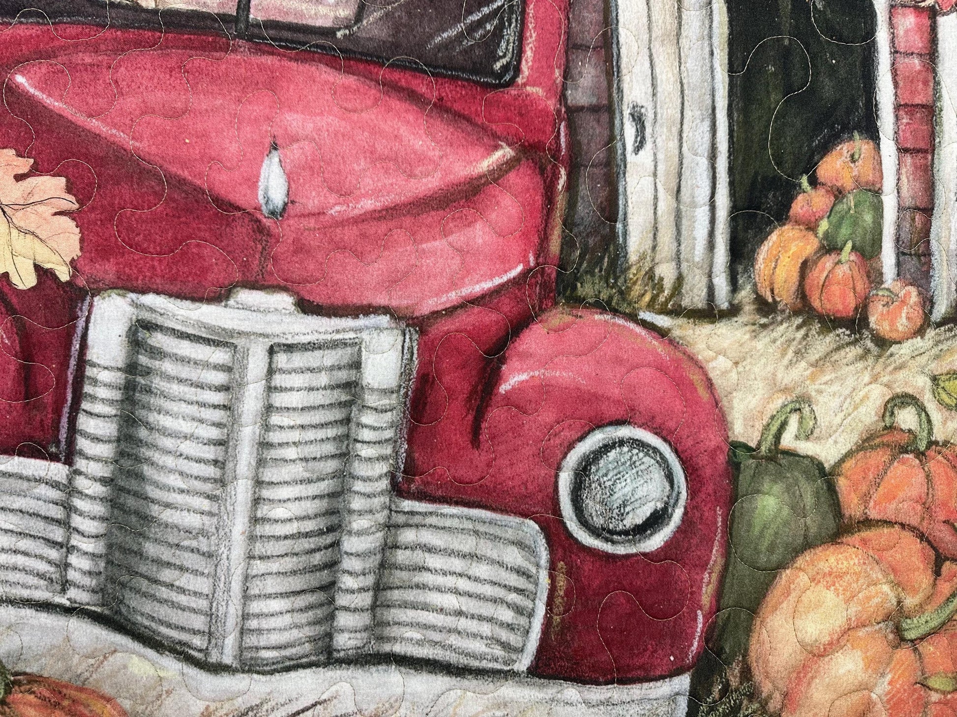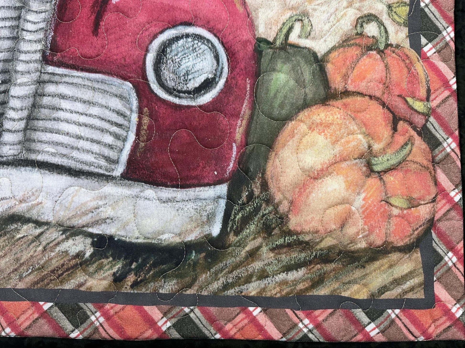 Decorate your home for the fall or Thanksgiving with this cozy red truck quilt (35" x 43"). Hang this on a wall (hanging sleeve included) or drape it over a chair or couch. If you love fall or know someone who does, this makes a beautiful gift. Perfect for decorating your home before Christmas.