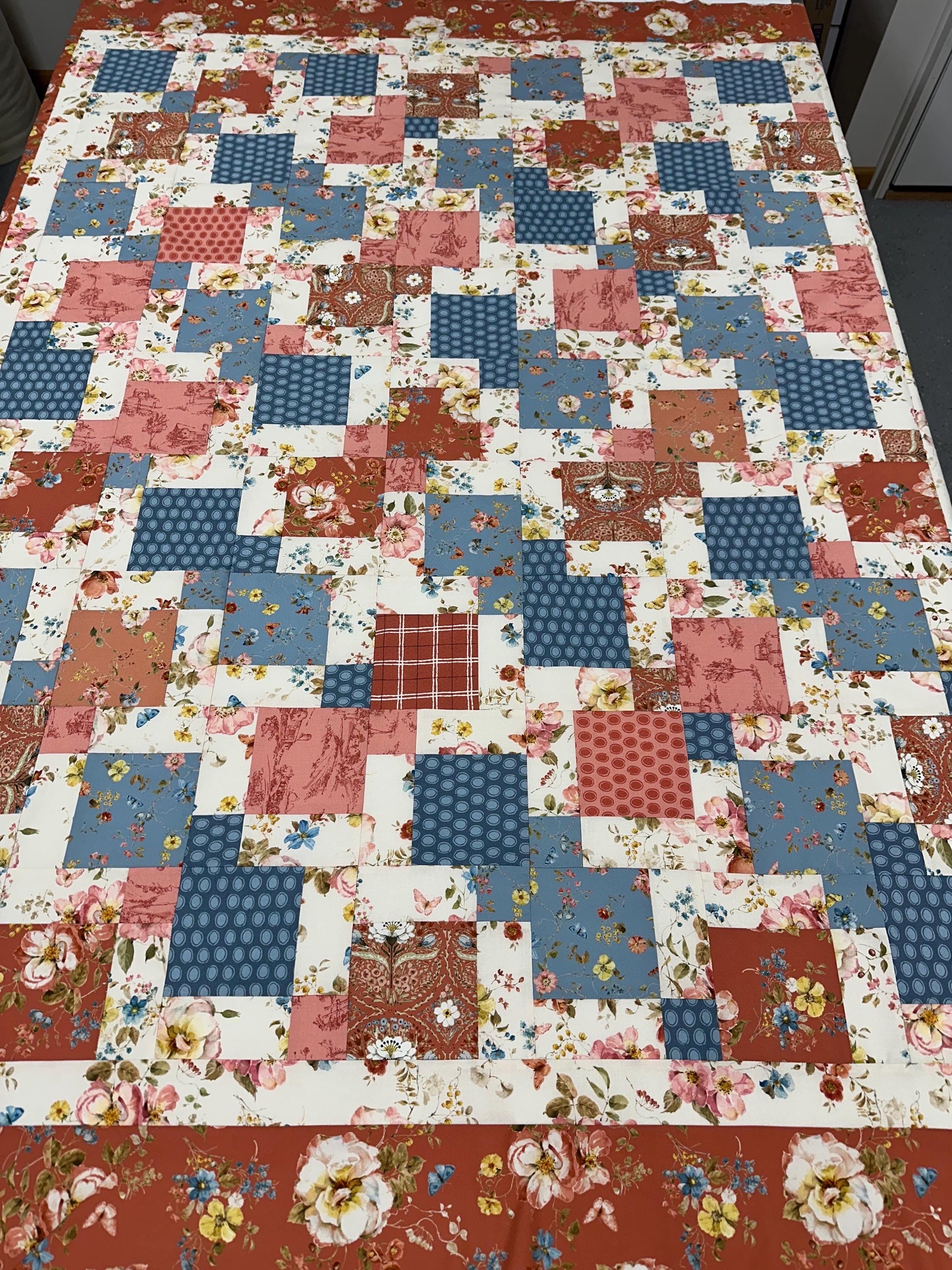 This listing is for the unfinished quilt top only already stitched together as shown, including a double border. You will need to provide binding, backing, batting, and quilting.