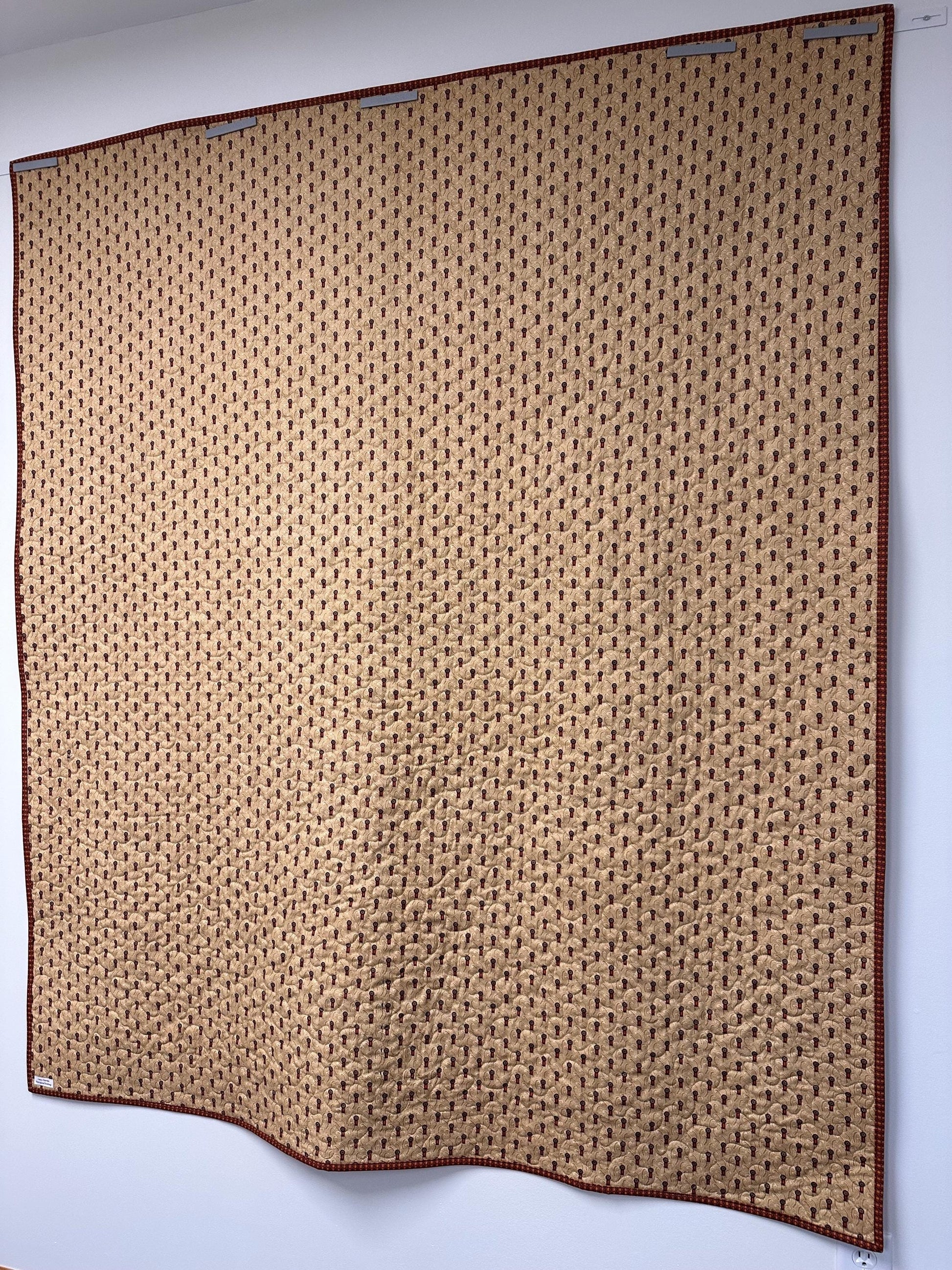 Quilting: This lap quilt is machine stitched and quilted with an overall meandering pattern using tan thread.