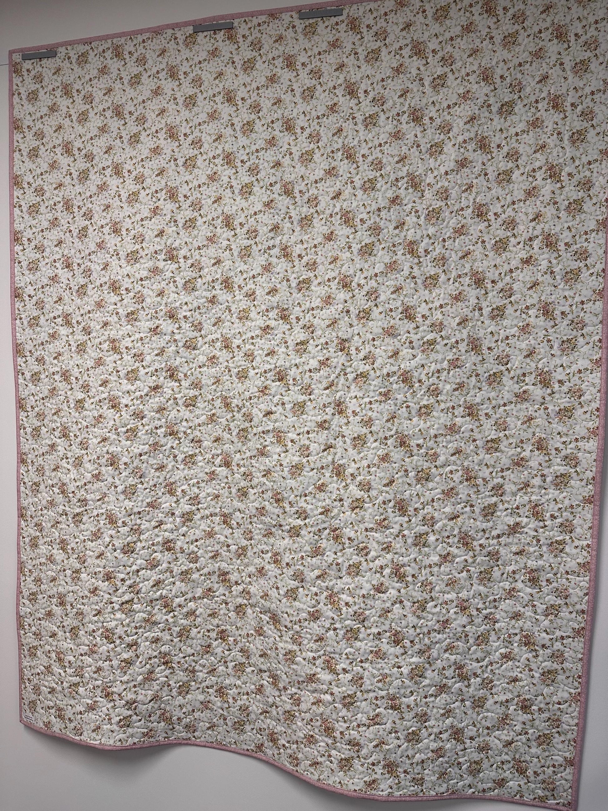 Quilting: This lap quilt is machine stitched with an overall meandering pattern with a light mauve thread.