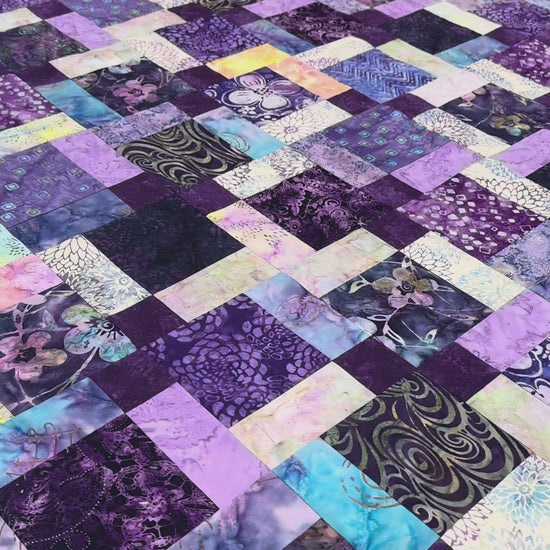 You receive the batik quilt top as shown, already pieced together. You will need to provide your own backing, batting, quilting, and binding. You could also add borders to make this quilt larger.