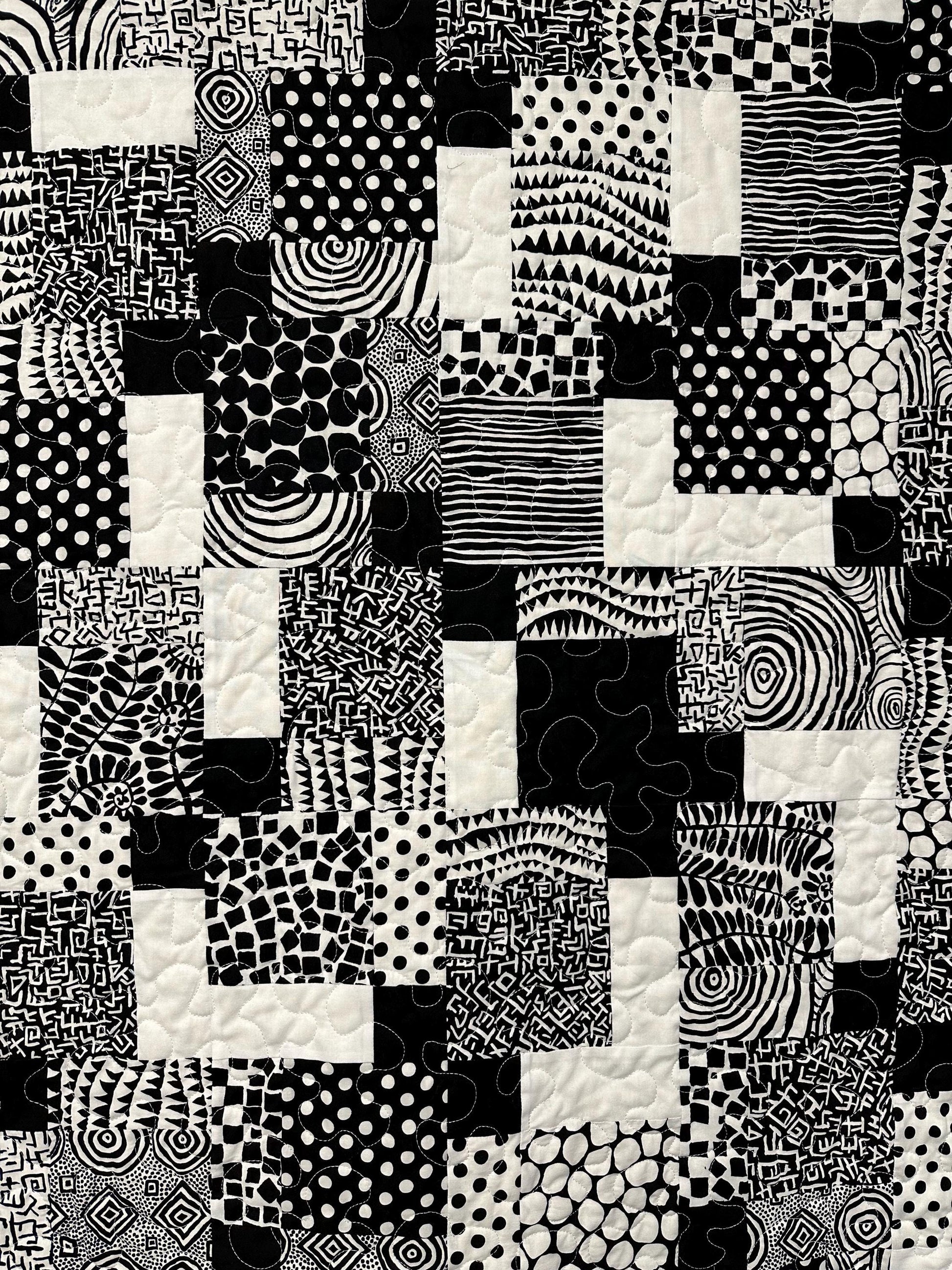 Fabric: Fabrics are from the Kaffe Fassett Collective for Free Spirit Fabrics. All fabrics are 100% Cotton. Patterns include a variety of stylized geometric designs along with solid black and white fabrics.