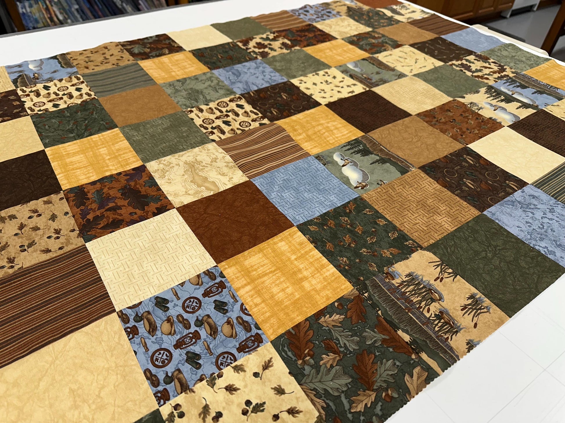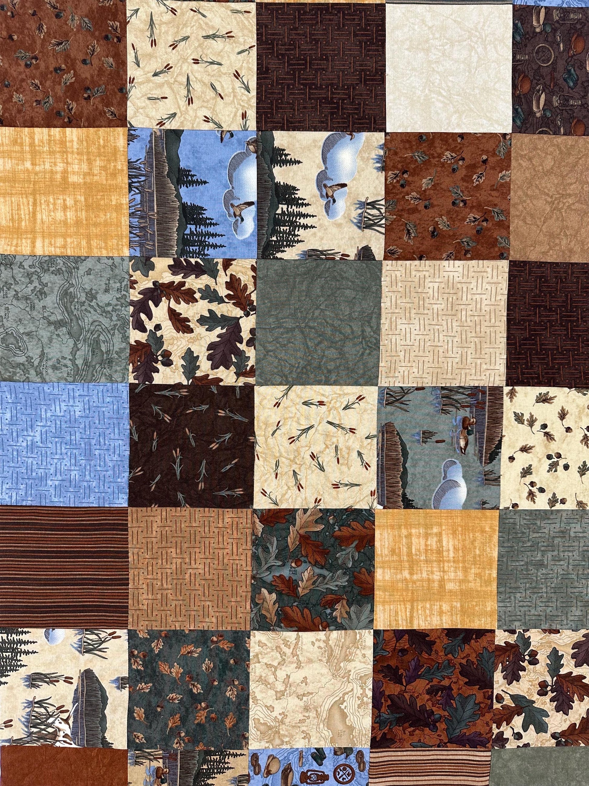 Unfinished Patchwork Quilt Top: Lake Lodge Fishing Theme for Sofa, Lap Throw, 36x45 Handmade