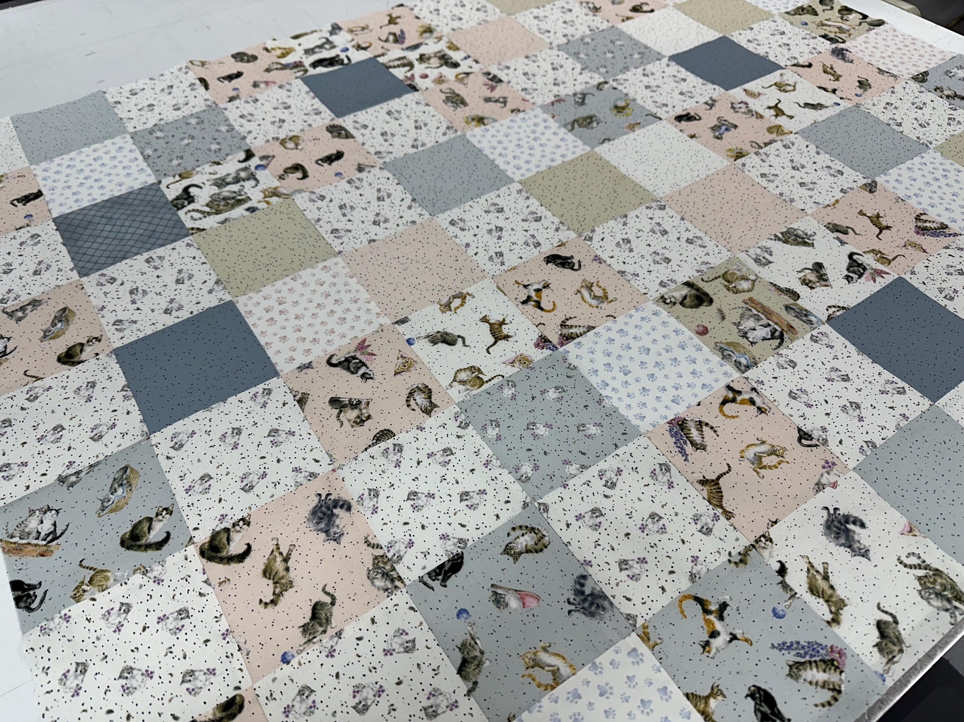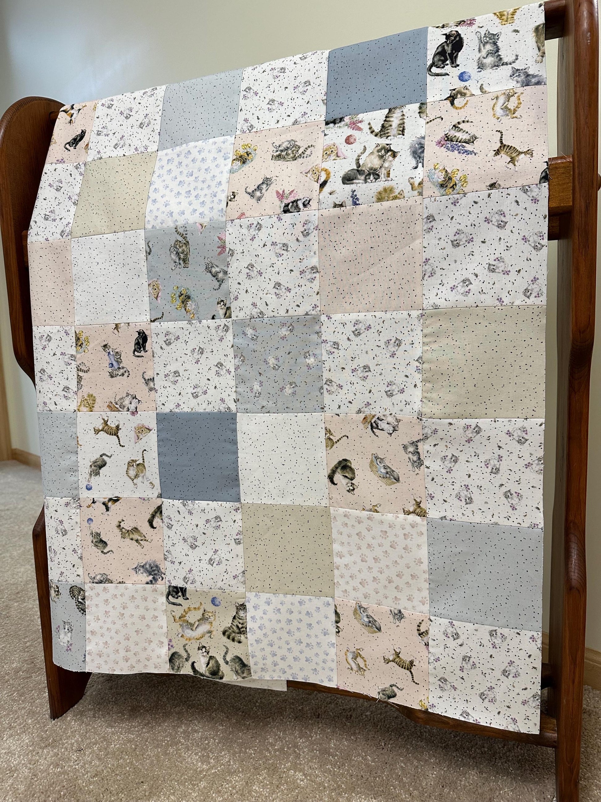 Unfinished Quilt Top: Cats Whiskers & Paws, Handmade, Modern Nursery Decor 36x44